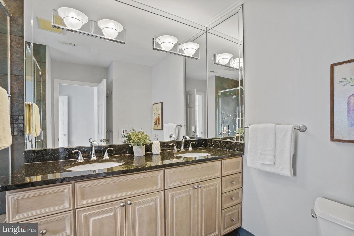 Venturing upstairs, you'll find a spacious primary bedroom filled with an abundance of natural light streaming through the wall of south-facing windows. This haven includes an ensuite bathroom, a walk-in closet, and soaring high ceilings. Across the hall, a roomy guest bedroom awaits, complete with its own ensuite bathroom and walk-in closet.