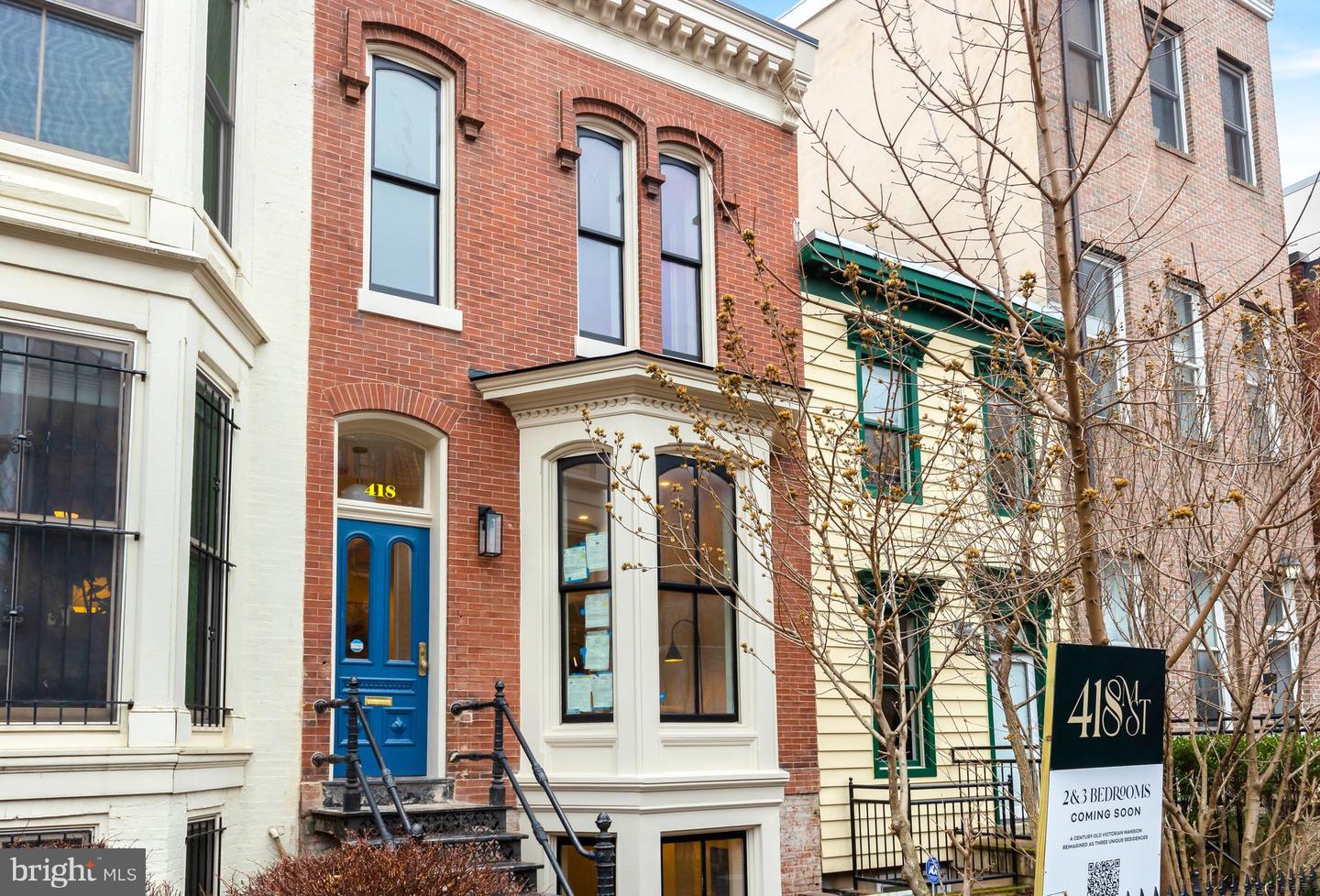 LOVE 418 M ST! A stunning collaboration between 1606 Strategies and Half Drop Studio. Originally constructed over a century ago, this classic Victorian has been reimagined as a collection of three pristine and distinctive residences. Unit #1 aka THE TERRACE FLAT is a custom finished 2BR/1BA condominium with private entrance and two terraces -one in the front and one in the back including rear terrace with dedicated gas line for grilling! Interior finishes include European white oak flooring and contemporary open living /dining concept with a beautiful bay window and historic features. Chef's kitchen includes gorgeous custom tile work, matte black hardware throughout, all custom painted cabinetry with integrated Bertazzoni appliances including 30" dual fuel range, custom hood, pot-filler, dishwasher, and 31" refrigerator with bottom-drawer freezer. Smart design including thermostats and USB ports strategically placed in the bedrooms and living. Beautiful blue ceramic spa-inspired tiles in the bathroom with heated floors! This residence is ideally located in the historic Mount Vernon Square/Convention Center neighborhood of NW. 94 out of 100 Walk Score. Just a few blocks to the Mt. Vernon Square -Convention Center Metro, grocers, shops, restaurants, night life and more. Don't miss this gorgeous new construction redesign offering unique elevated finishes, timeless details, and a one-of-a-kind opportunity to own a piece of DC history! Nearby rental parking available.